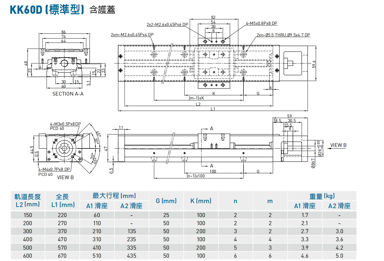 KK单轴机器人透过模组化之设计,整合滚珠螺杆和线性滑轨,可节省以往传统致动平台需经过导引和驱动元件之选用、安装校验、体积大、佔空间等缺点。因此KK单轴机器人可提供快速选用、安装、体积精简、高刚性等特性,可大幅减少客户端的使用空间与时间。