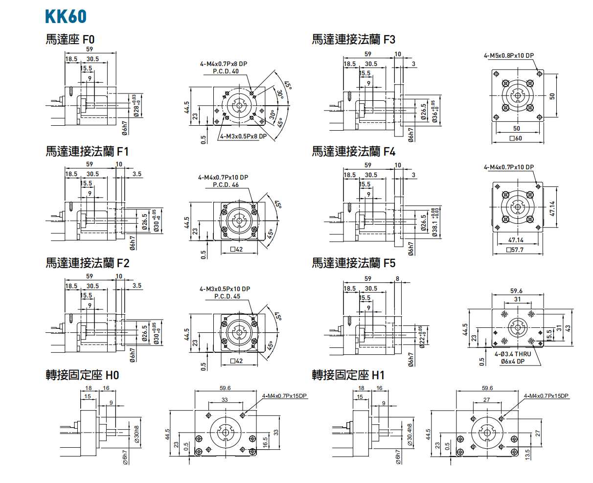 ◎ 马达连接法兰:可将各种不同马达锁固于KK单轴机器人之上