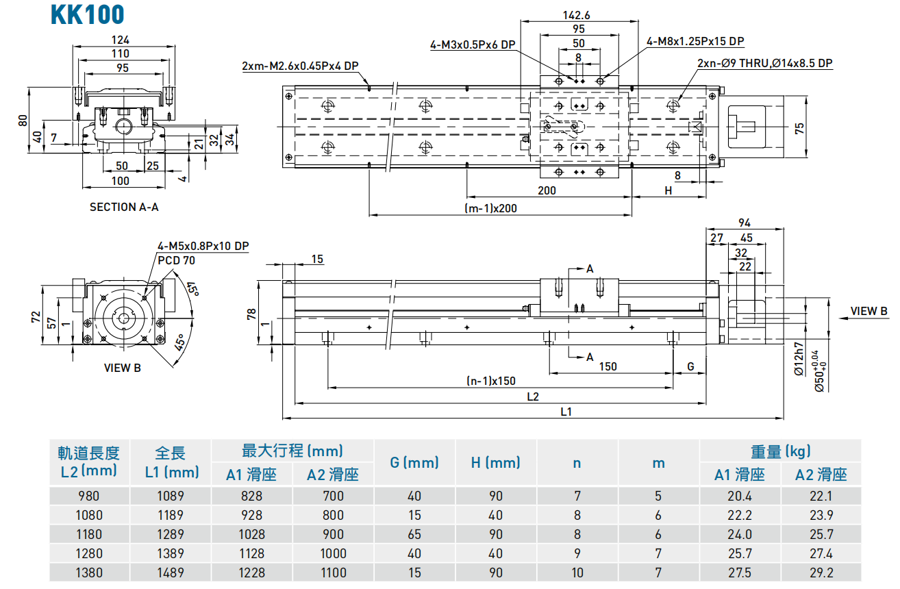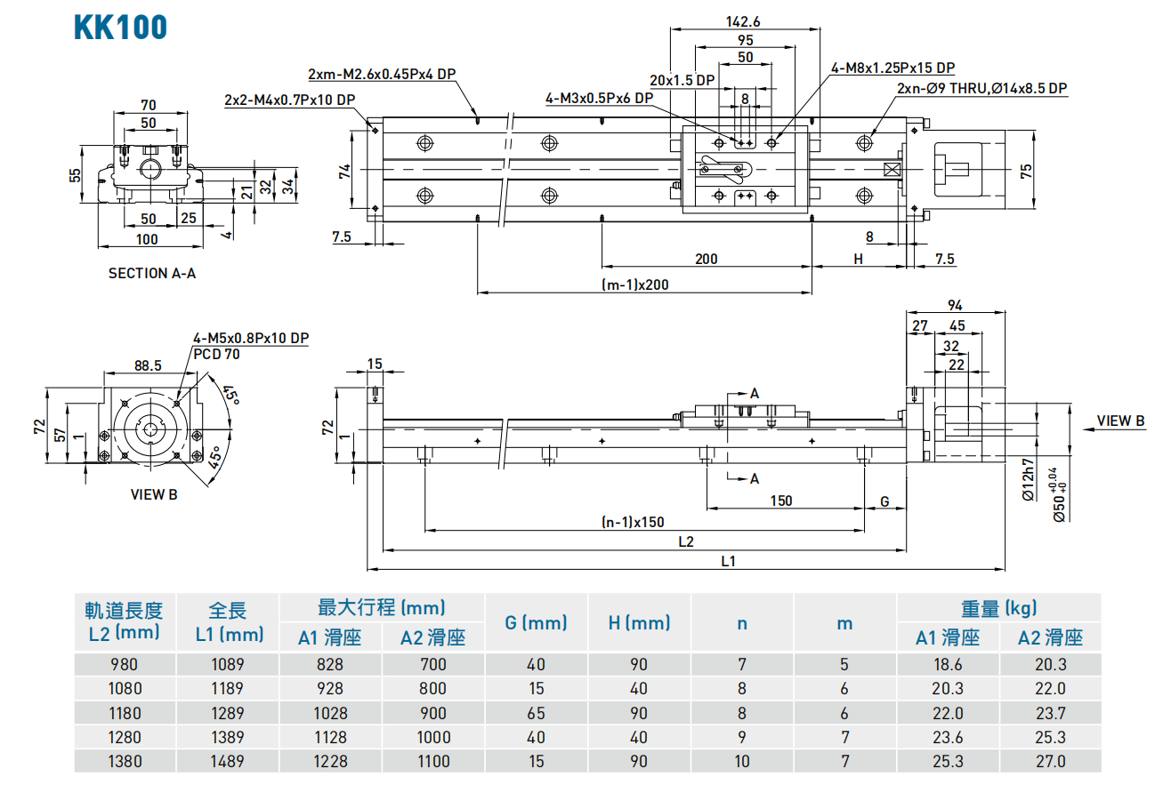 KA左接式:KA10010P-100BFL特性:安装与维护容易、低价格、高刚性、高重现精度±0.01mm/±0.005mm、内置AC伺服马达(选配)、客制化行程 应用:高精密产业、FPD产业、自动送料机构、自动化视觉检测、自动化组装与点胶、电路板雕刻设备